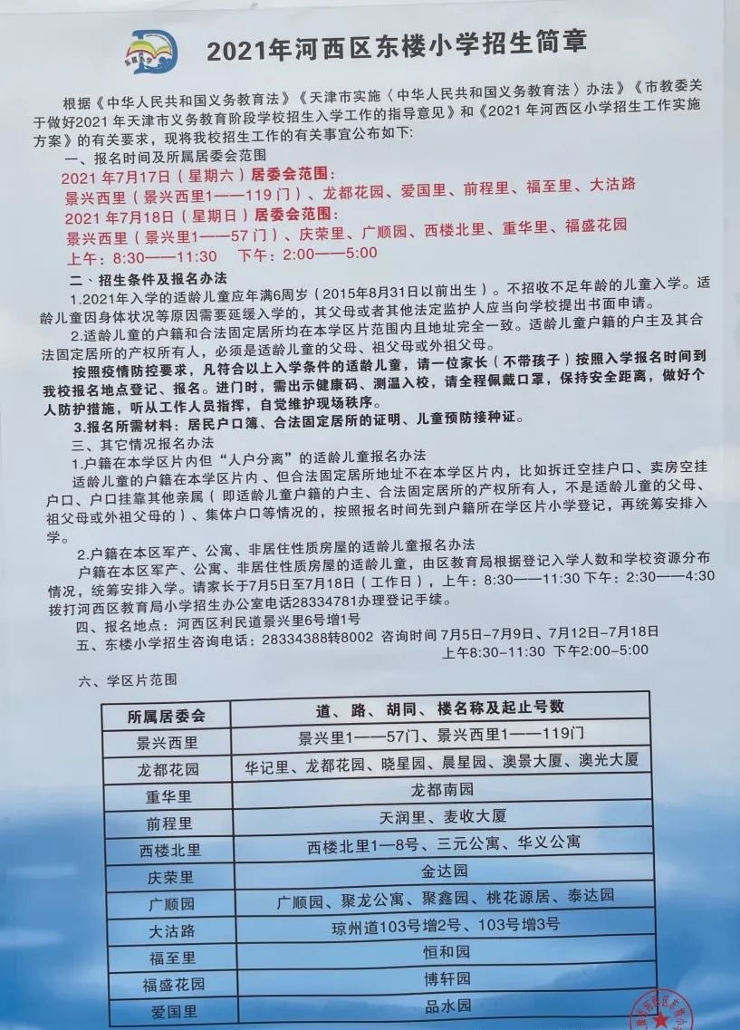 2021天津河西区东楼小学招生简章 2021天津河西区东楼小学招生简章及答案