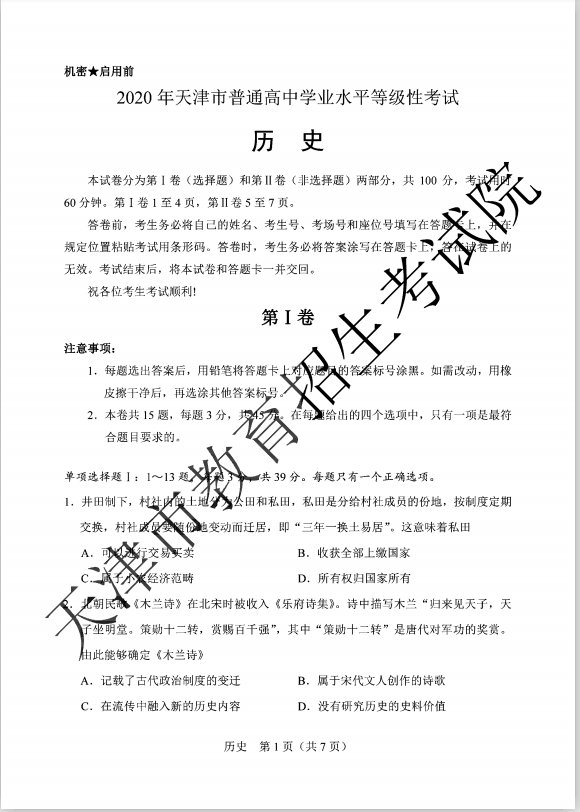注:2021年天津高考试题和答案尚未公布,本文内容参考2020年信息,小编会在最新消息公布后及时更新~