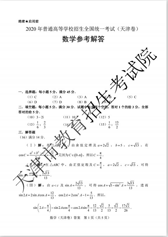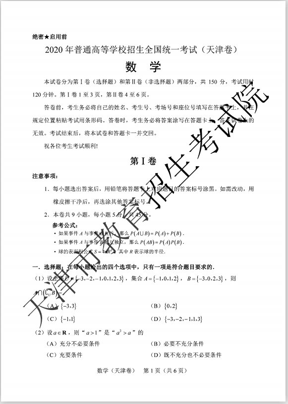 注:2021年天津高考试题和答案尚未公布,本文内容参考2020年信息,小编会在最新消息公布后及时更新~
