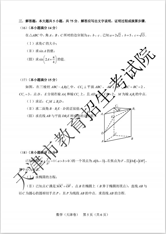 2021年高考天津卷数学科目试卷及答案 2021年天津市高考数学试卷