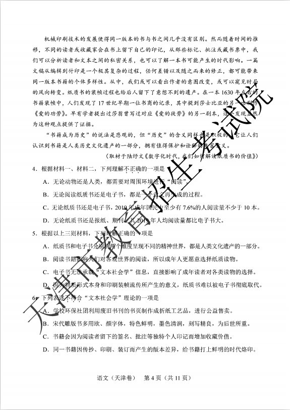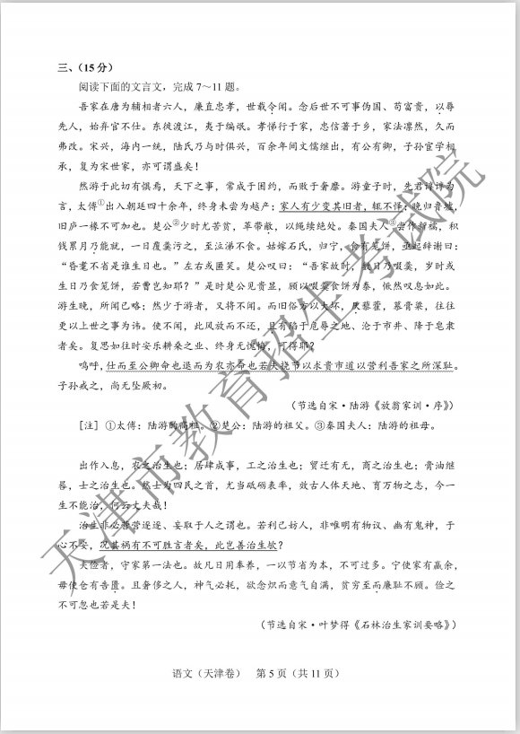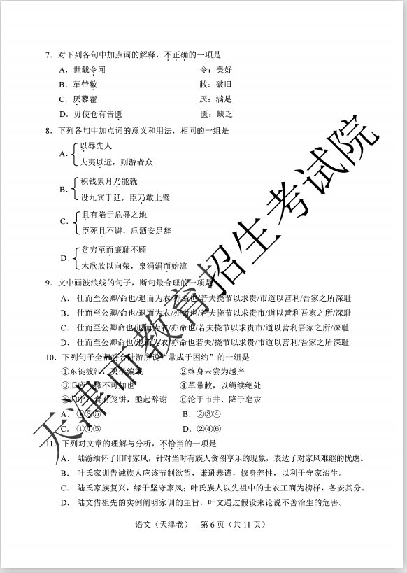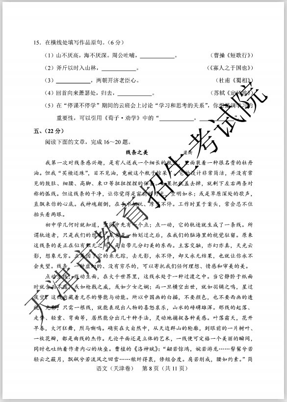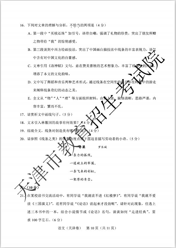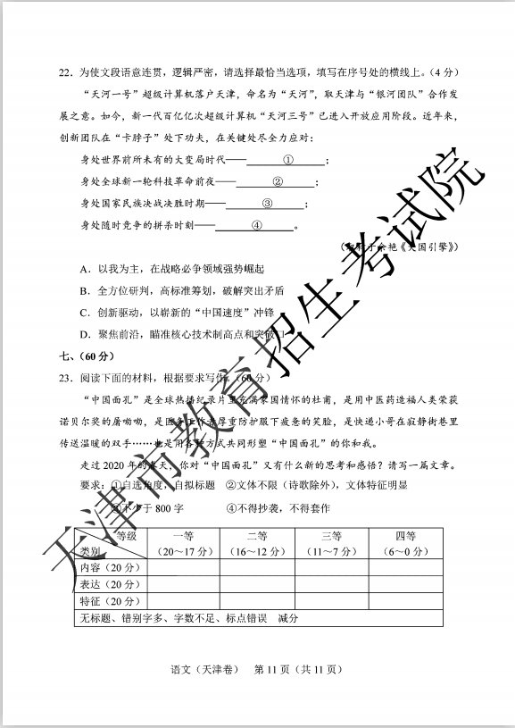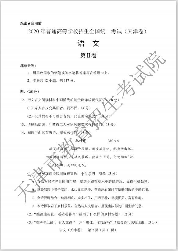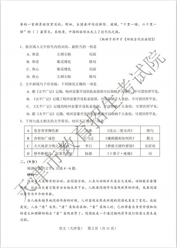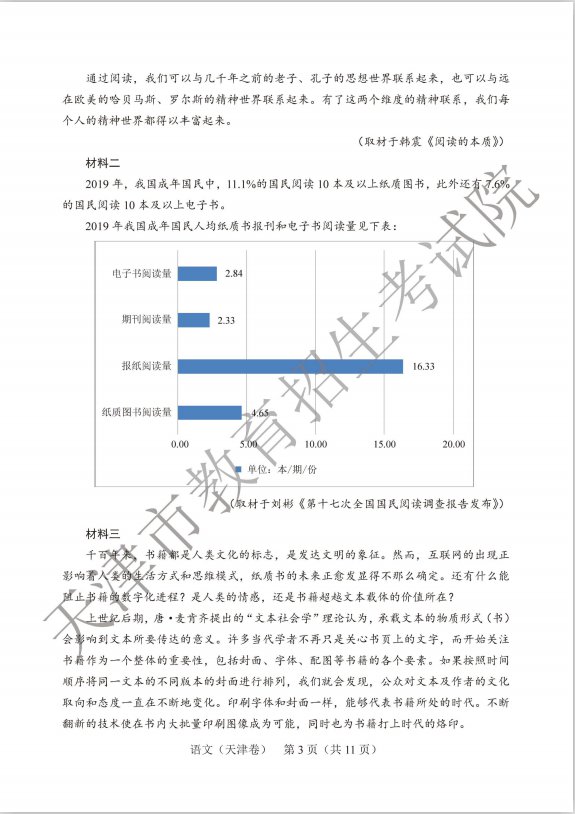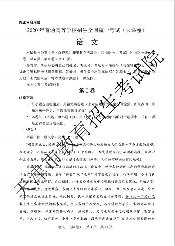 2021年高考天津卷语文试题和答案(2021年高考天津卷语文试题和答案)