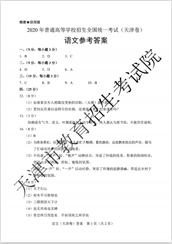 注:2021年天津高考试题和答案尚未公布,本文内容参考2020年信息,小编会在最新消息公布后及时更新~