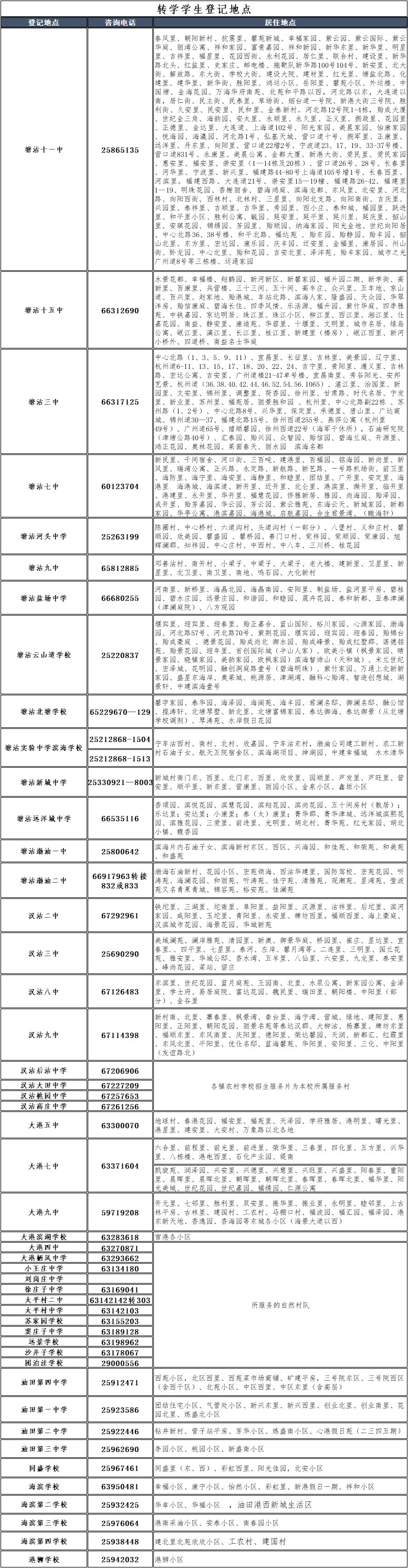 2020年天津市滨海新区初中阶段转学登记地点汇总