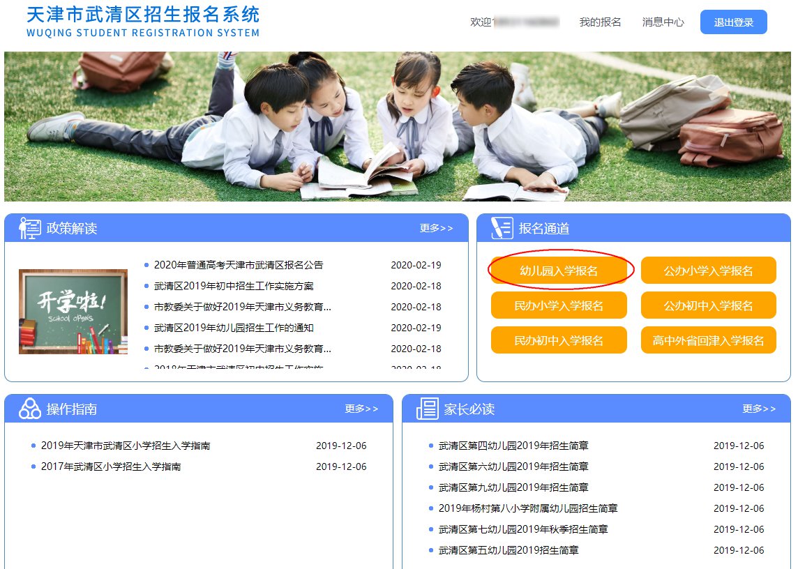 2020年天津市武清区公办幼儿园网上报名操作指南