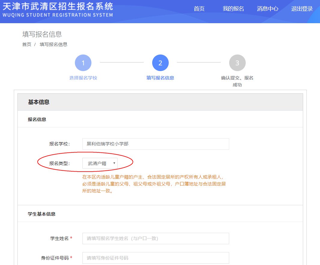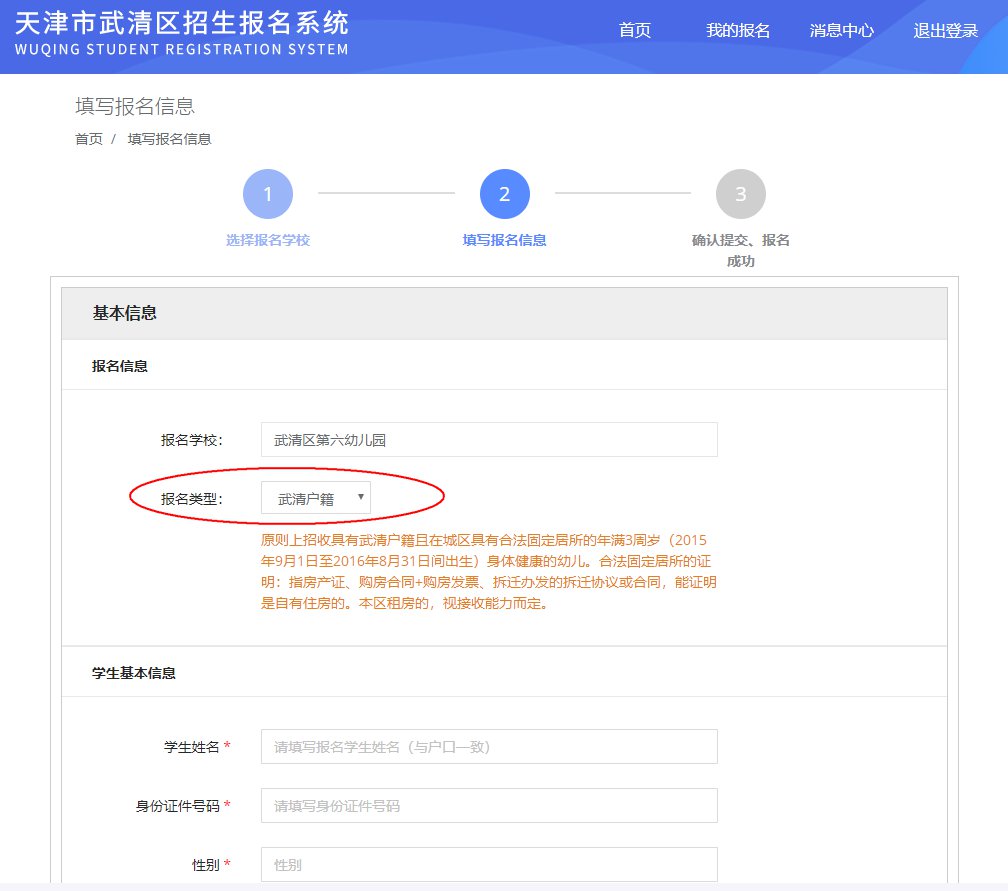 7、第七步:选择报名类型,并按照提示要求完整填写学生基本信息。