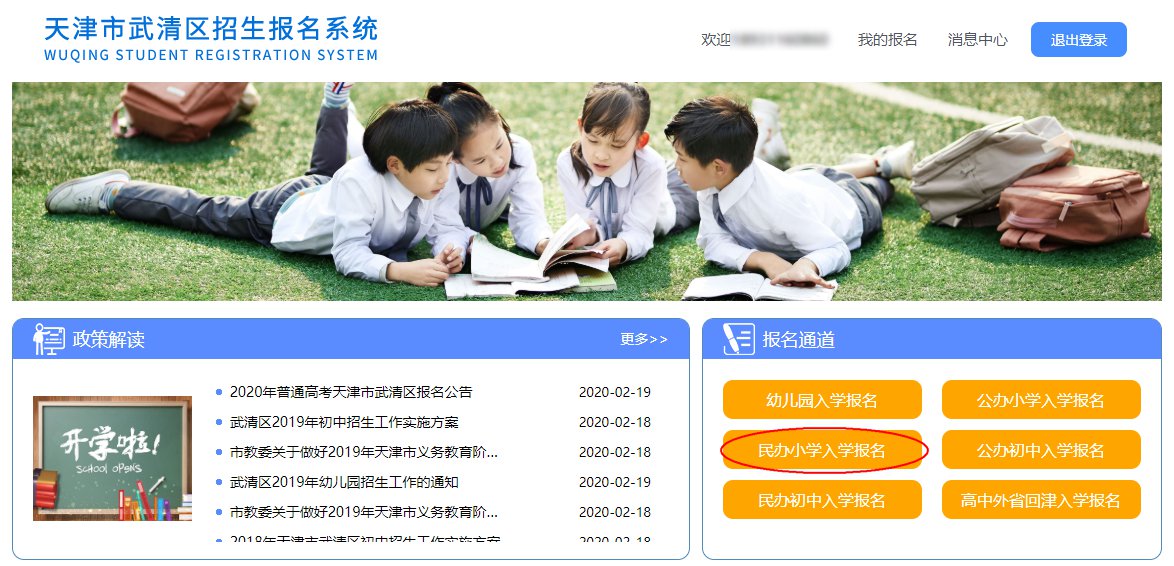 2020年天津市武清区招生报名系统民办小学入学报名操作指南