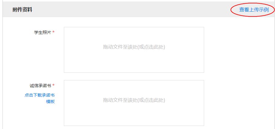 在上传相关的附件资料时,可点击右侧“查看上传示例”按钮,查看上传文件规格及样式。