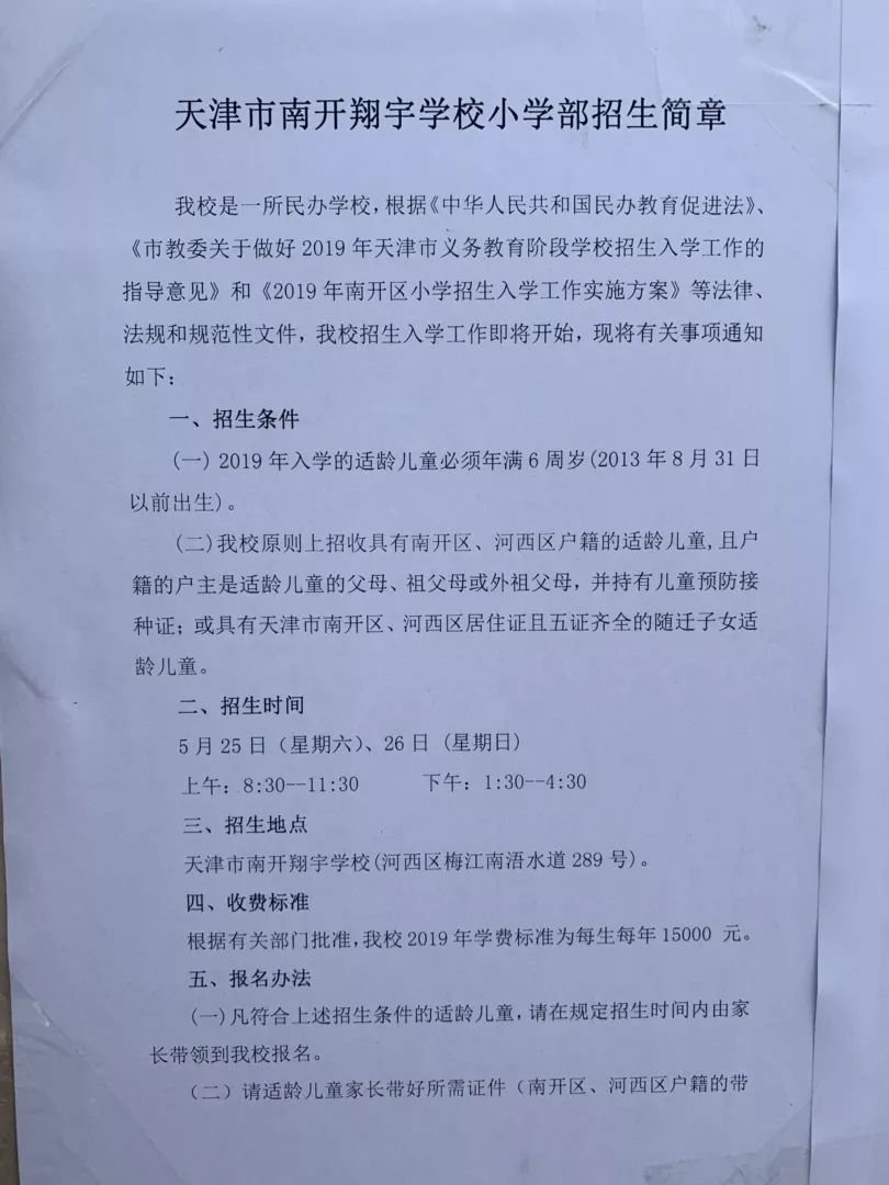 原则上招收具有南开区、河西区户籍的适龄儿童。