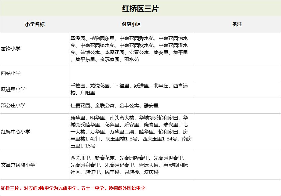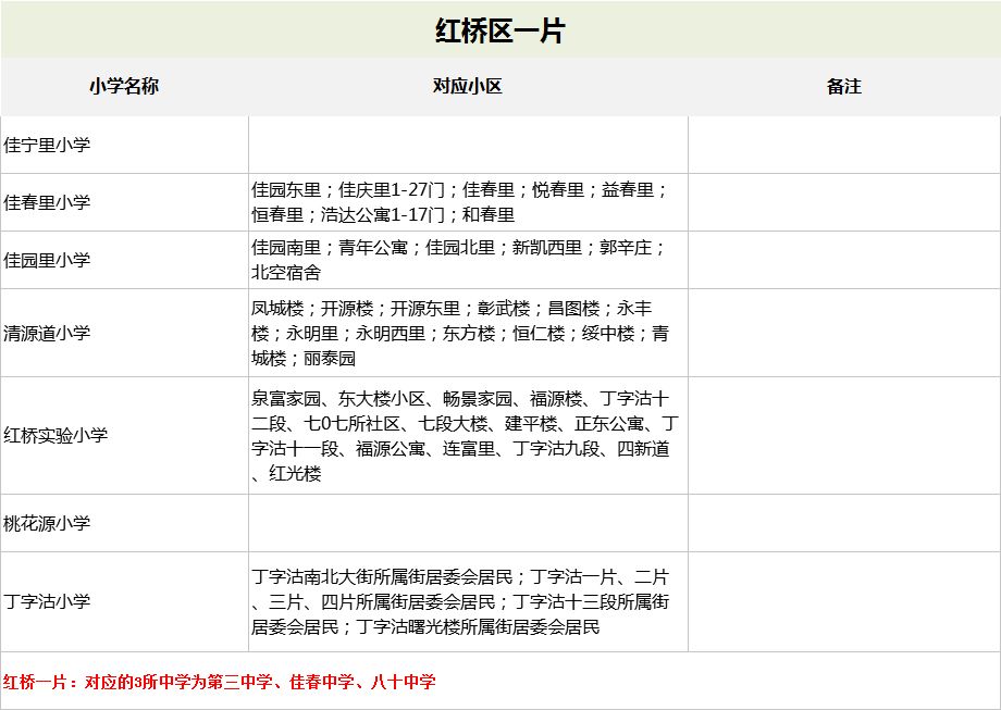 2021天津市红桥区小学入学片区划分范围(幼升小)
