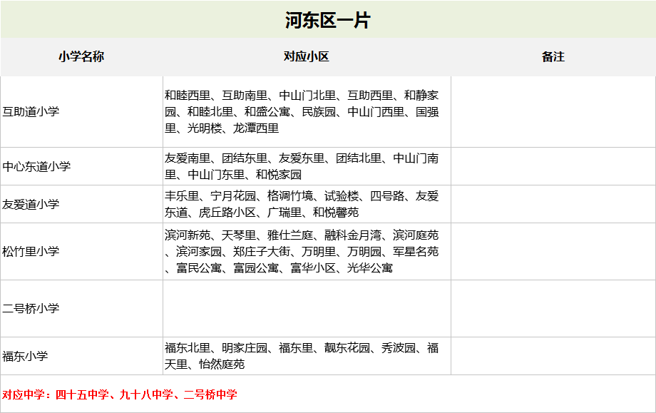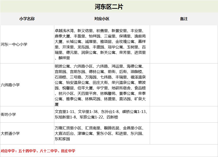 2021天津市河东区小学入学学区划分(天津河东区小学学区片划分)