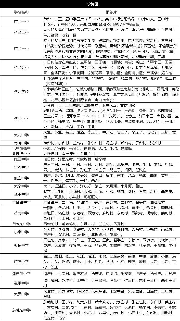 2021天津宁河区初中划片汇总 宁河区中学划片