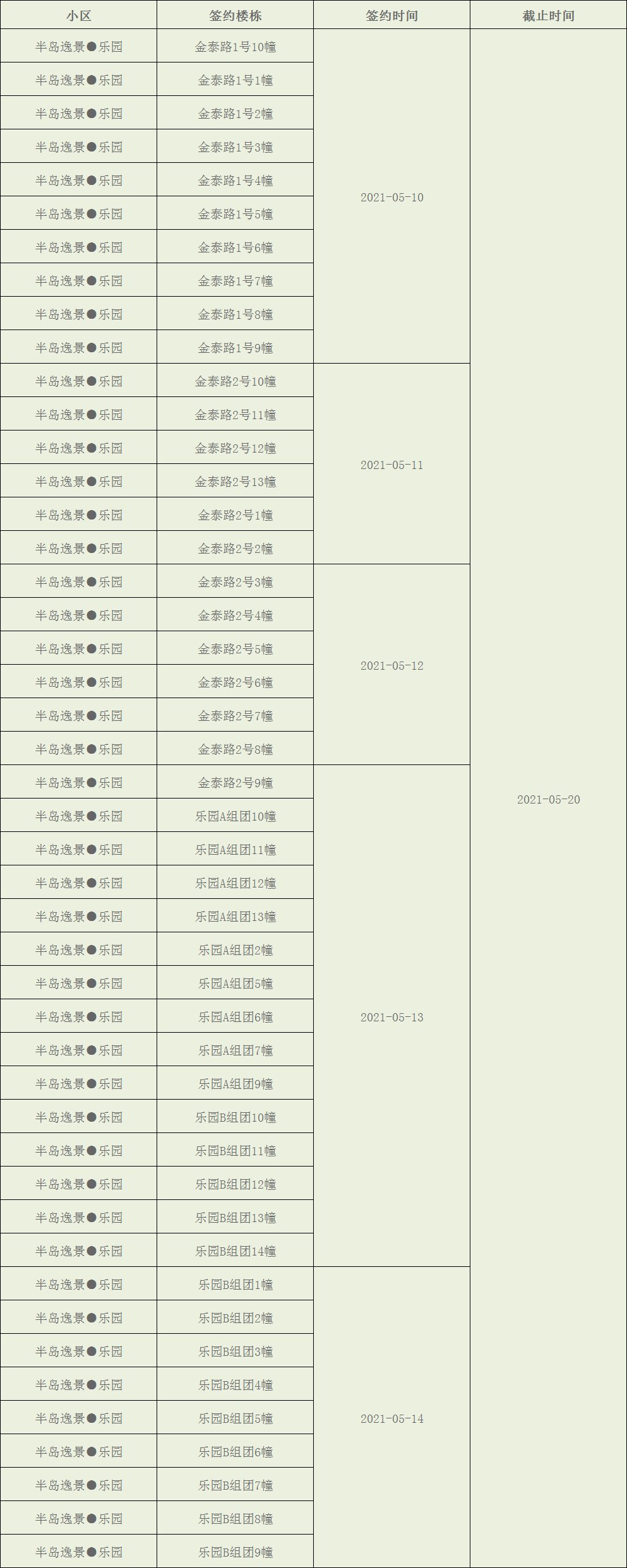 第34次摇号配租对象于2021年4月起将分批次、分楼栋在小区房管中心开展签约,按《重庆市公共租赁住房管理实施细则》规定,若未在截止时间前签约的,视为自动放弃,配租予以作废。各楼栋签约时间及截止时间如下: