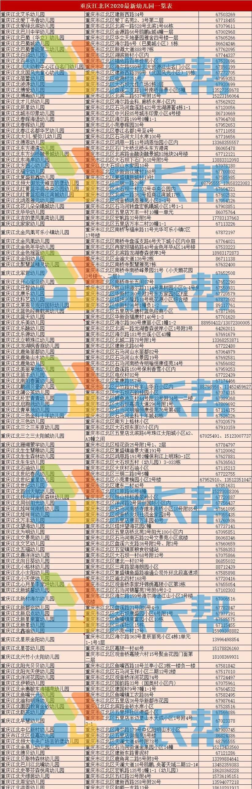 重庆江北区幼儿园一览表 重庆江北区附属幼儿园