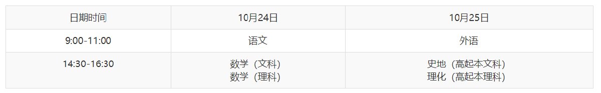 2020年全国各类成人高校招生统一考试于10月24、25日进行。高中起点本、专科各科考试时间为120分钟;专升本各科考试时间为150分钟。
