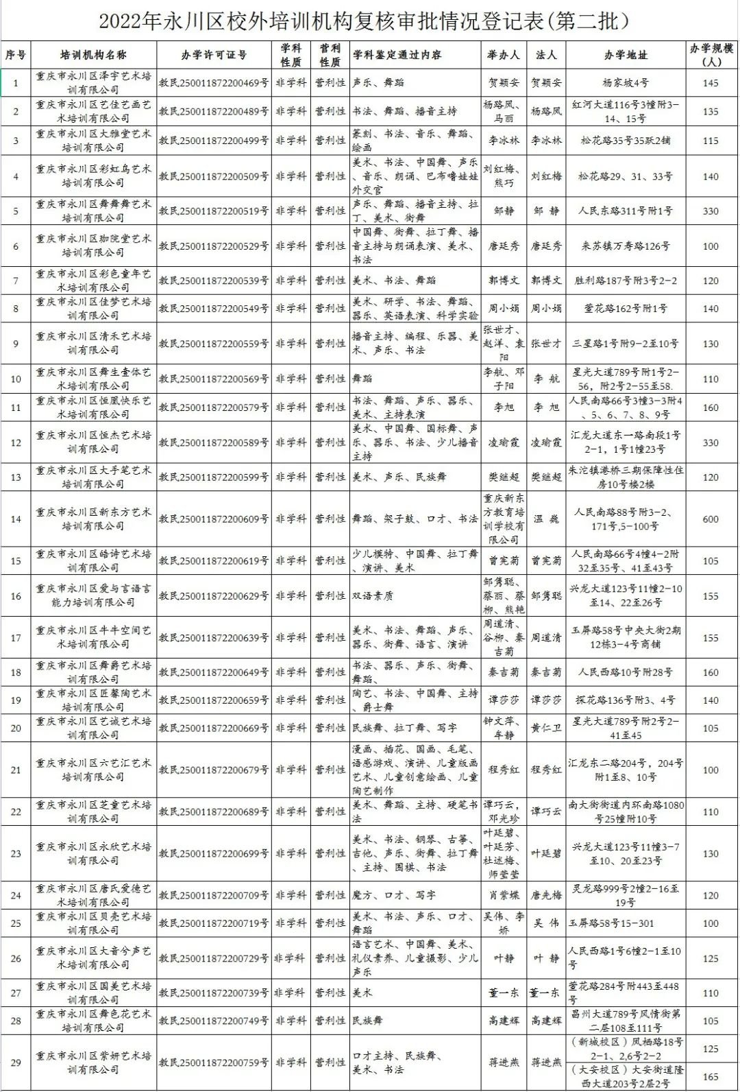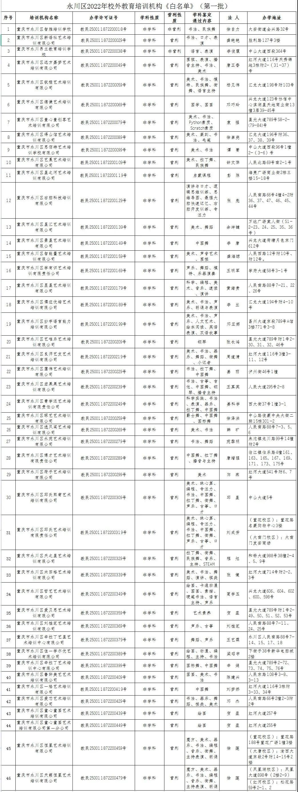 重庆市永川区校外培训机构白名单