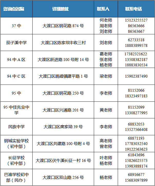 2022重庆大渡口初中招生电话(重庆大渡口初中入学政策)