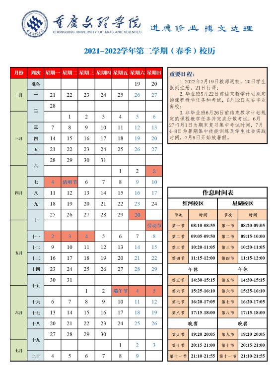 重庆文理学院2021-2022校历最新(重庆文理学院2021毕业时间)