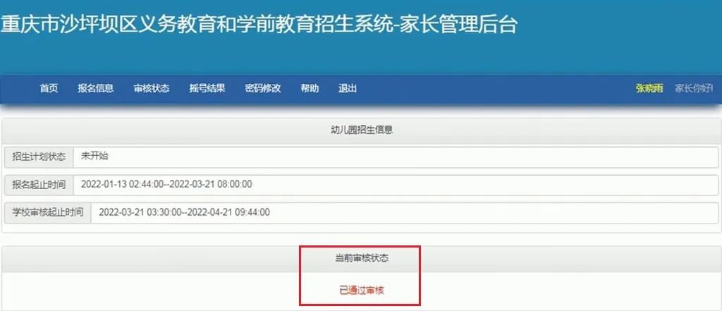 若显示“已通过审核”,则表示该幼儿可参与下一阶段摇号。