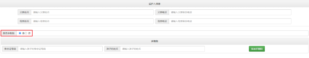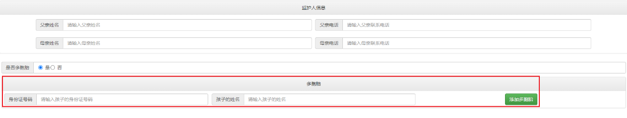 2. 输入多胞胎幼儿身份证号及姓名,点击添加“多胞胎”,完成添加。