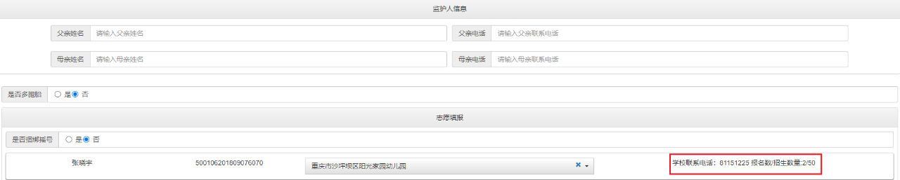 1. 若申请幼儿为双胞胎(多胞胎),在“是否多胞胎”处可选择“是”。