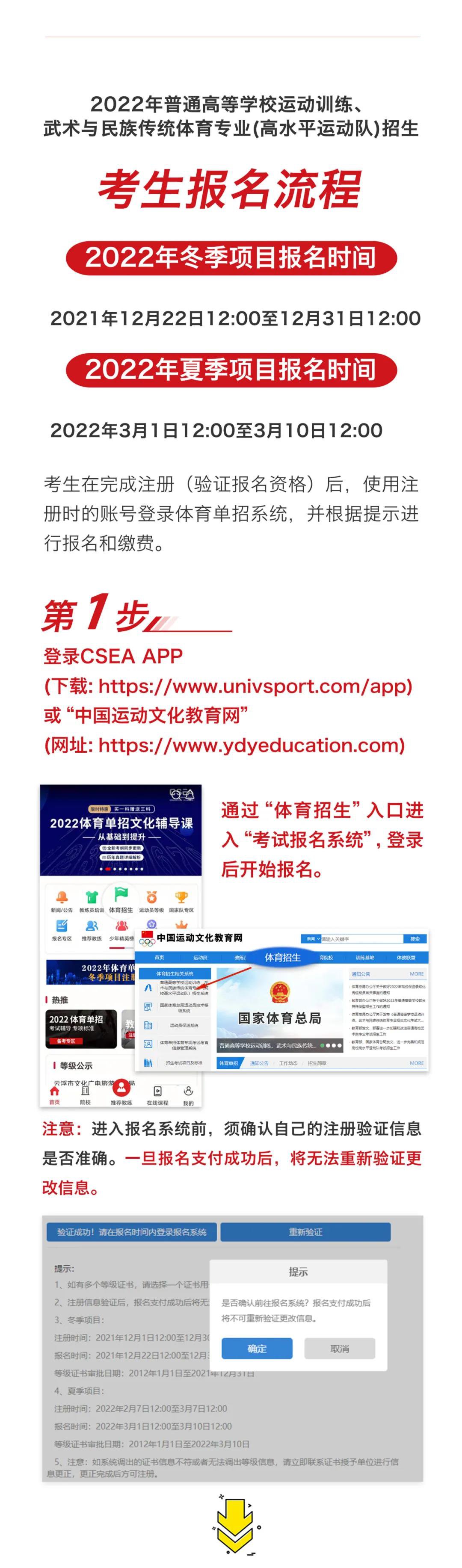 12月22日12:00,2022年体育单招报名工作即将启动,冬季项目考生将可以登录“体育单招系统”进行报名。