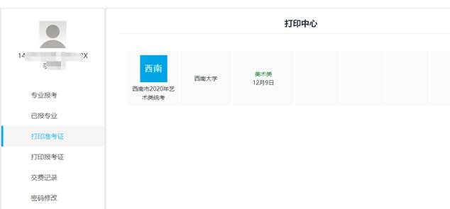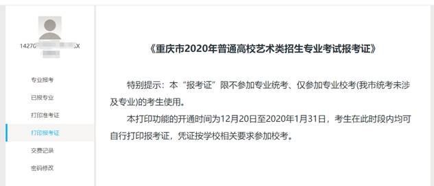 交费成功后,考生根据重庆统考的相关要求,在规定的时间进入打印中心,打印考生的准考证信息。
