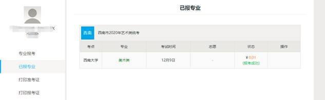 交费成功后,考生须进入“交费记录”和“已报专业”中看交费结果,确认交费成功,以免耽误报名考试。