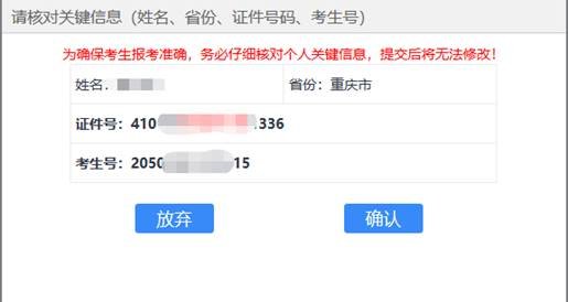 D. 点击【选报专业】按钮,输入【验证码】核实考生信息,确认无误以后点击【确认】;