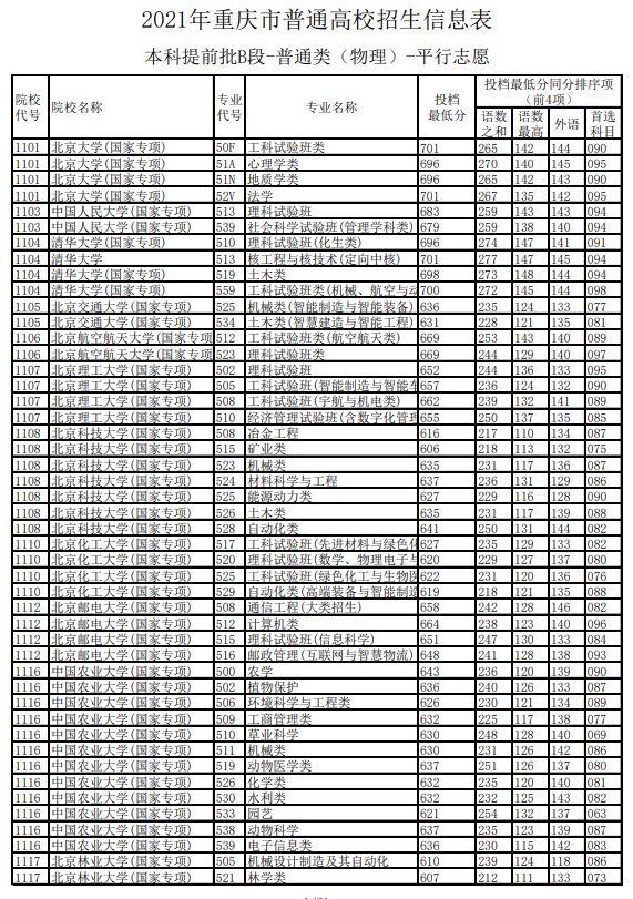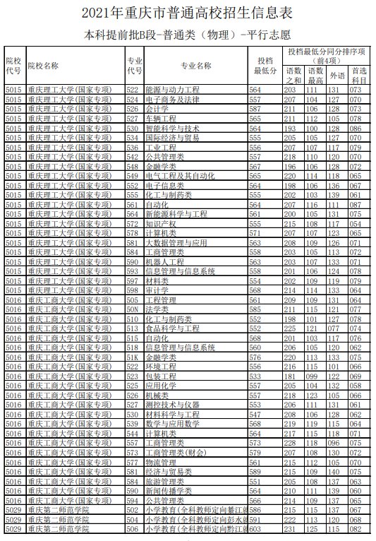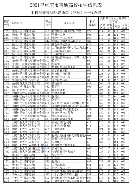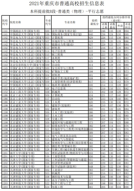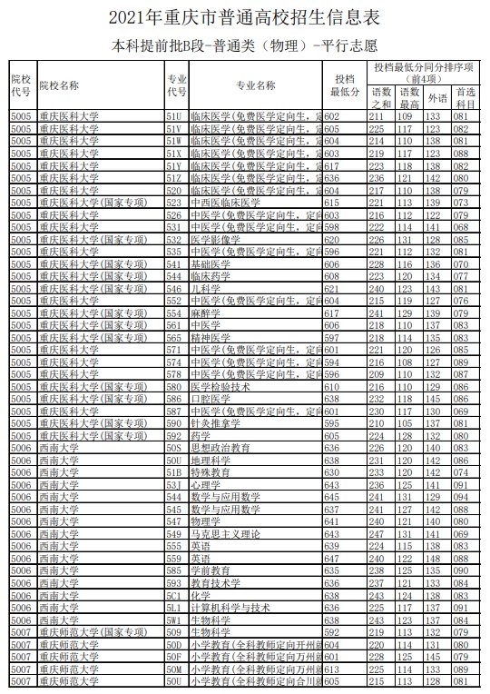 2021重庆高考提前批B段投档最低分(2021年重庆本科批最低投档线)