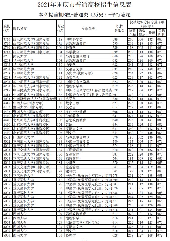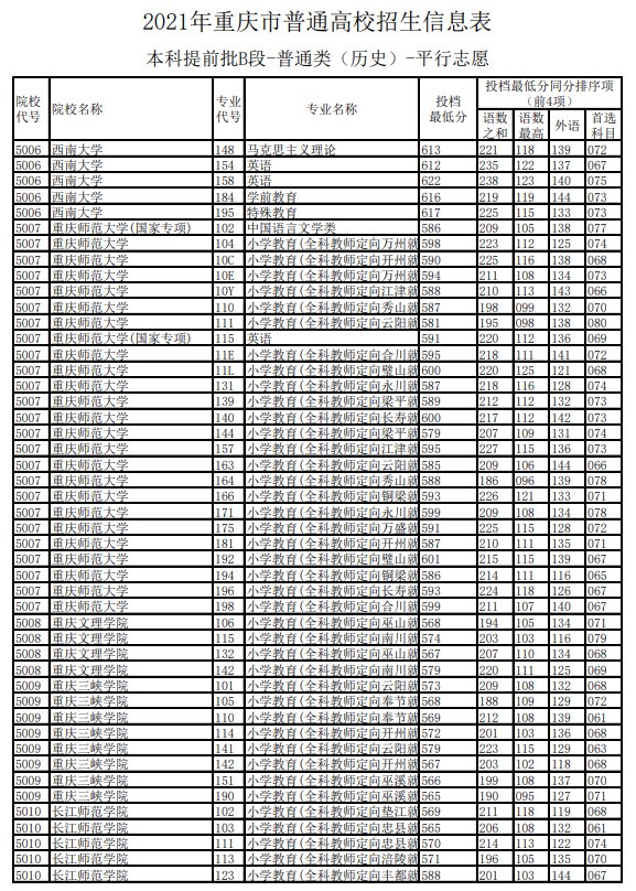 2021重庆高考历史类提前批投档线(2021重庆高考本科批投档线)