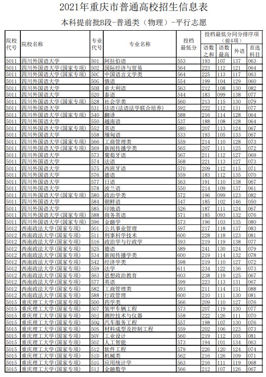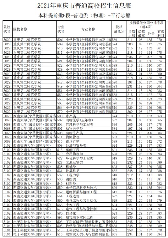 2021重庆高考本科提前批B段第一次补录 重庆本科提前批B段