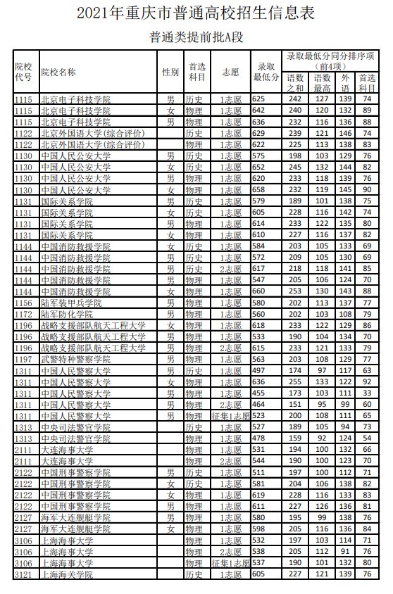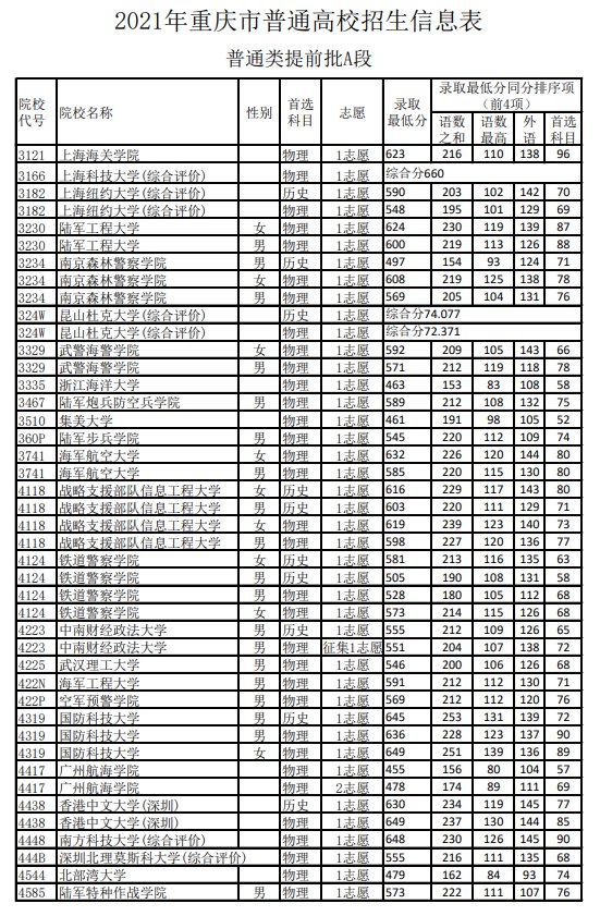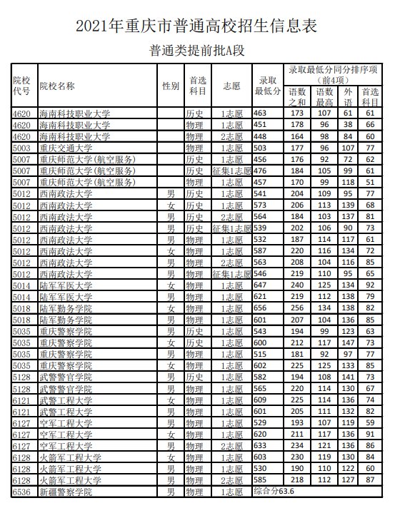 2021重庆高提前批A段分数线(2021高考重庆提前批次录取分数线)