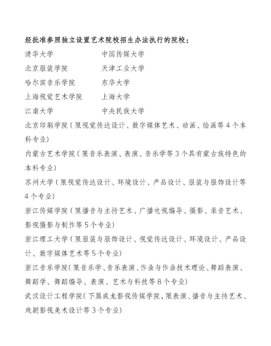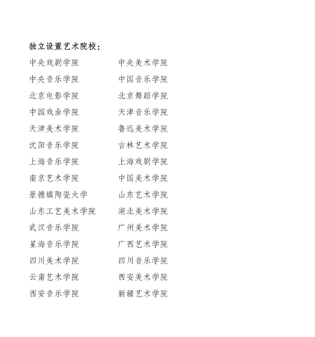 独立设置艺术院校和经教育部批准参照独立设置艺术院校招生办法执行的院校名单: