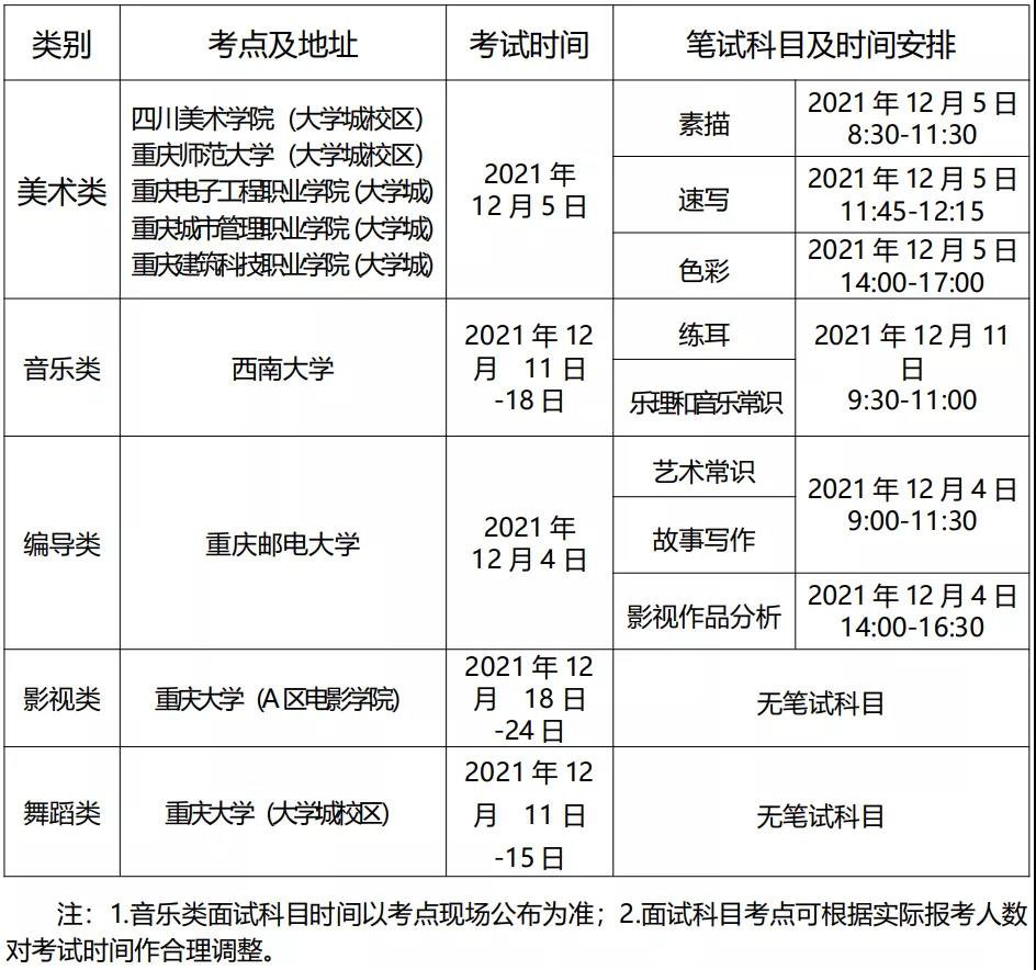 2022重庆艺考报名、考试时间地点 2021重庆艺考报名时间截止日期