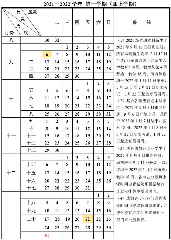 重庆交通大学校历2021—2022学年