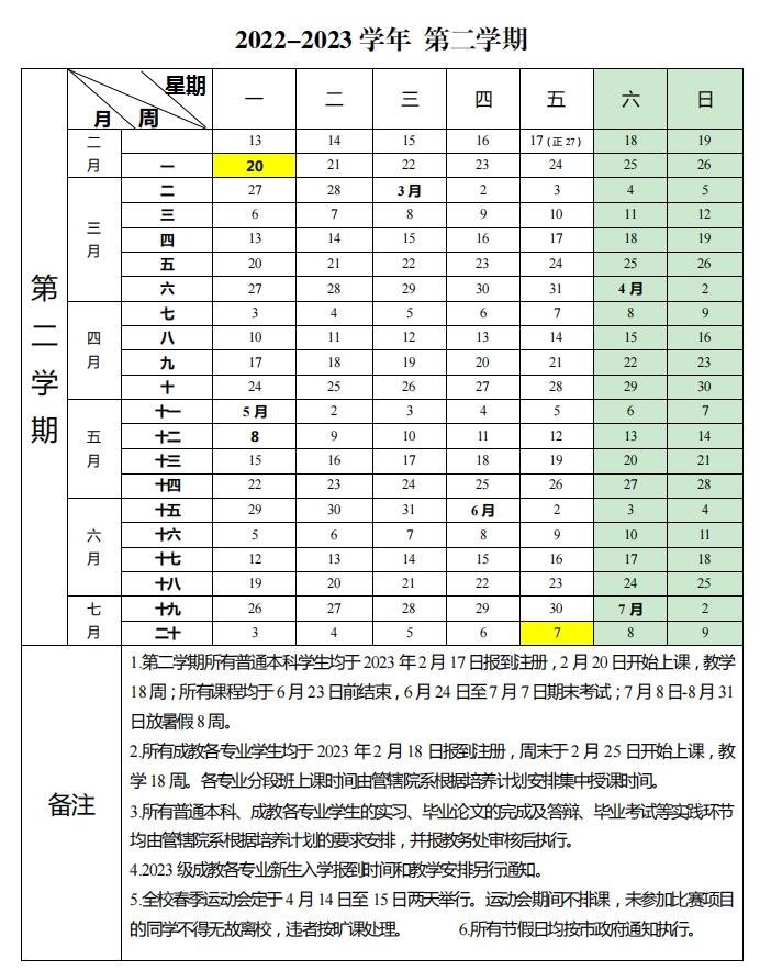 重庆医科大学2022—2023学年第二学期(共20周)