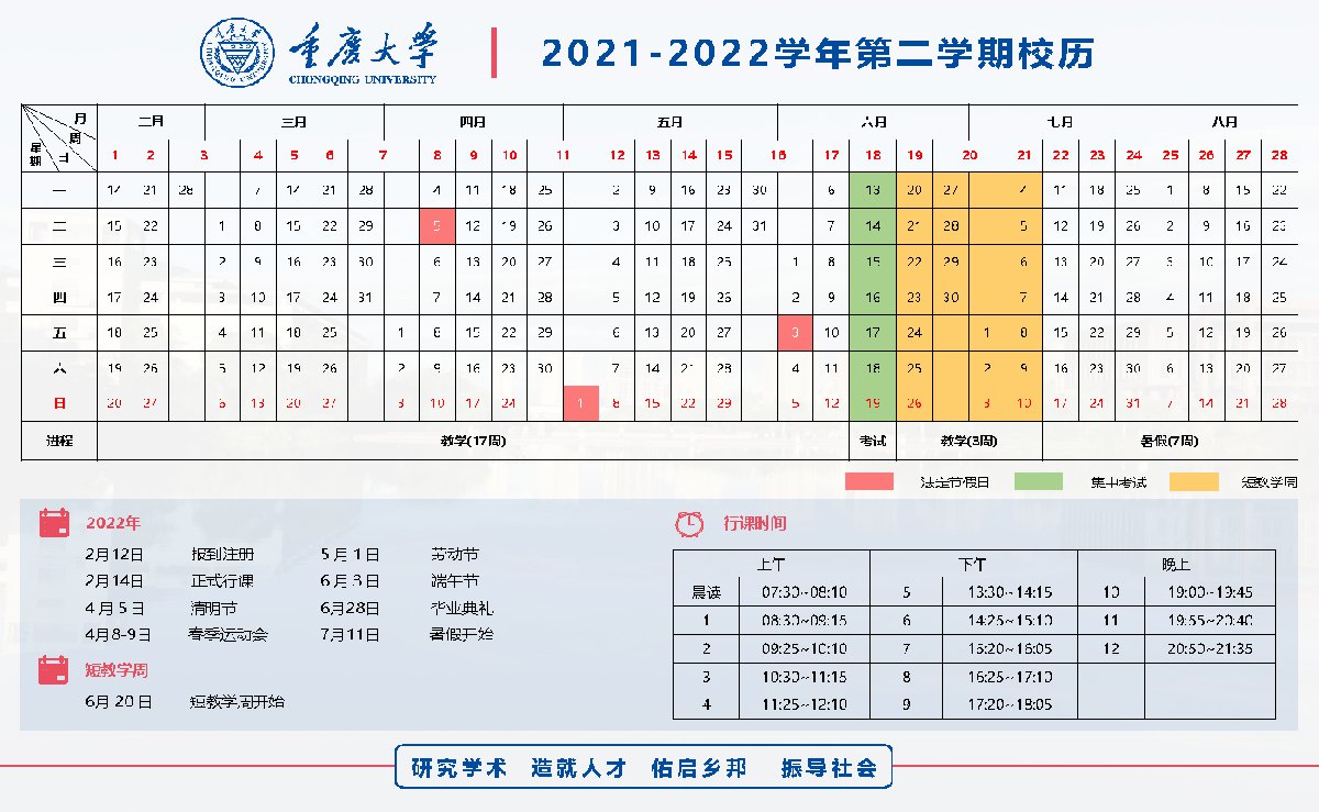 2021—2022学年重庆大学校历 2021-2022重庆大学校历