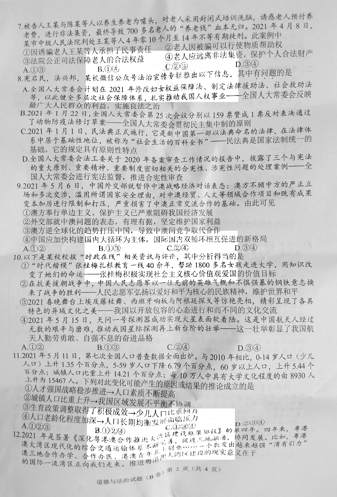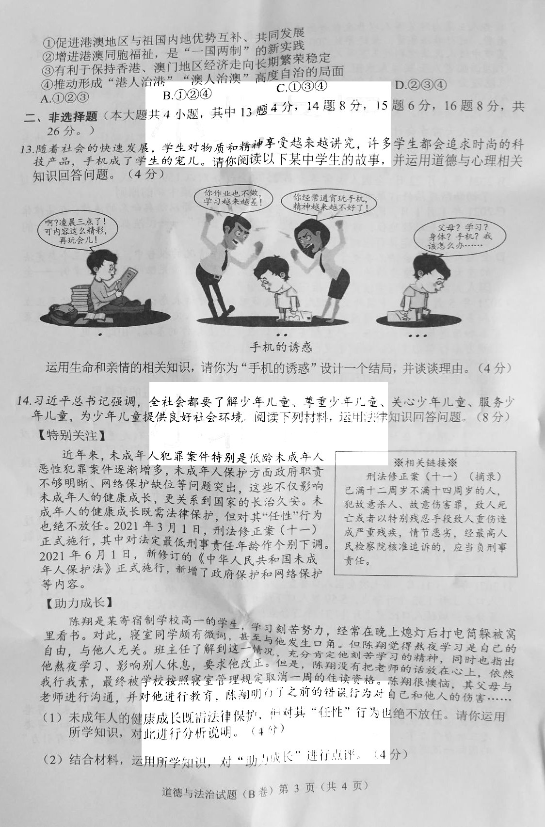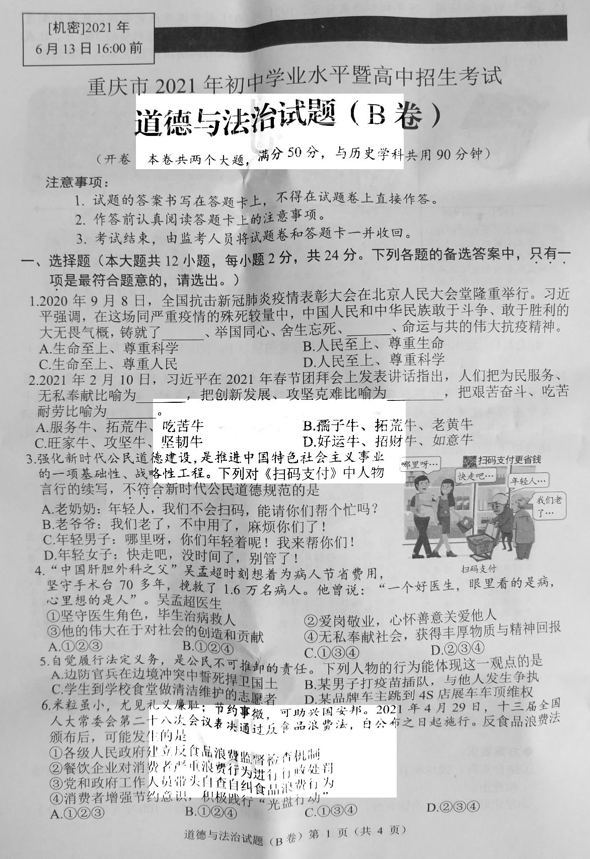 2021年重庆中考道德与法治B卷试卷(图片版):