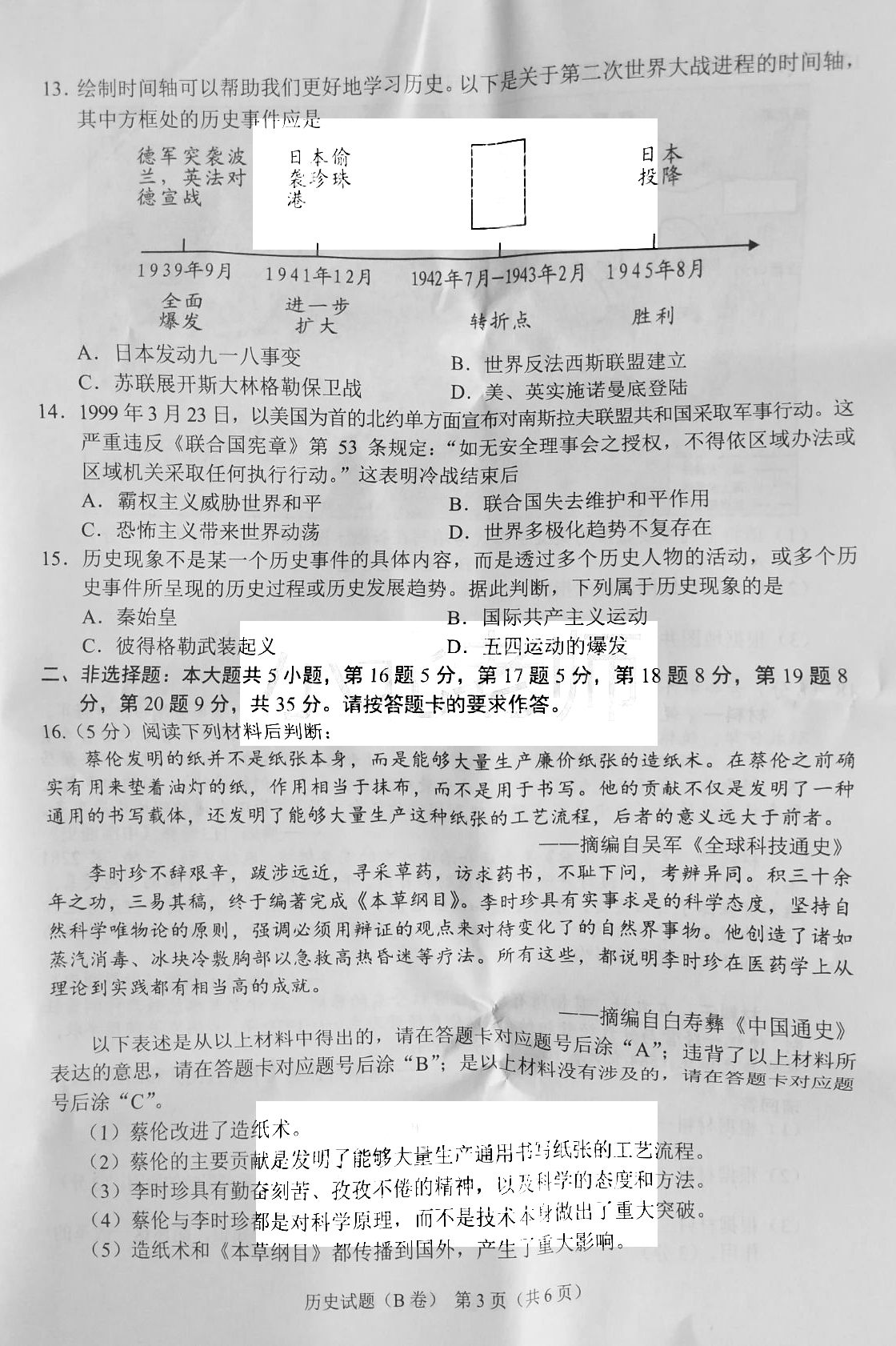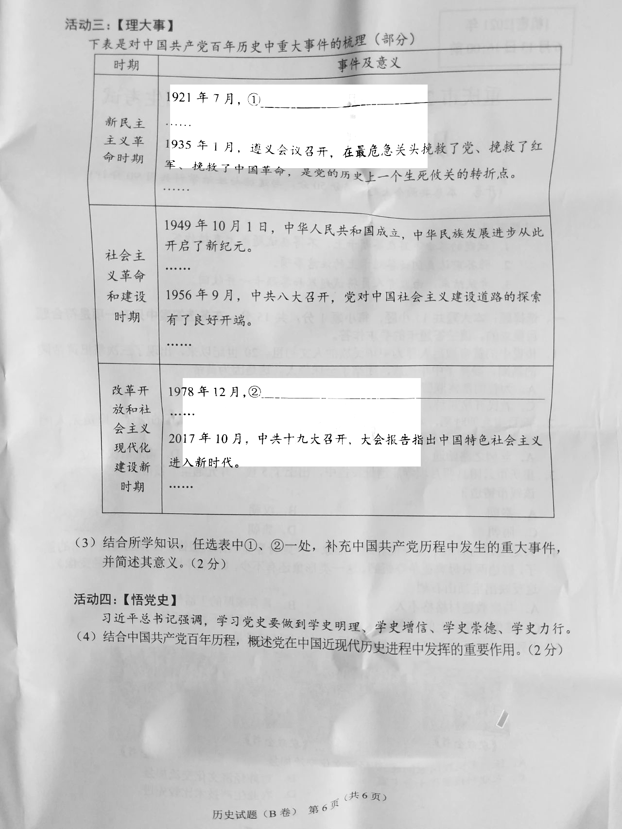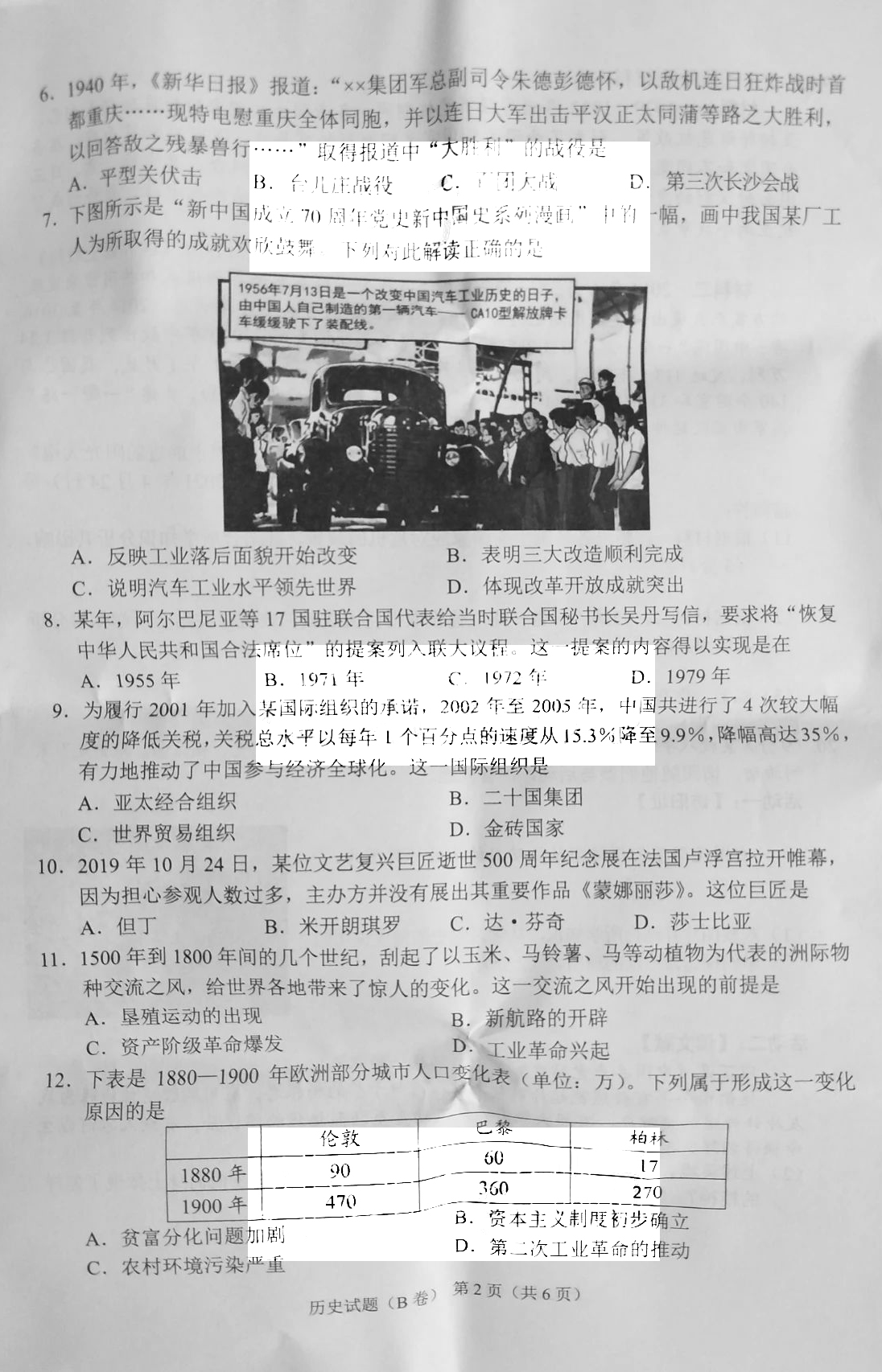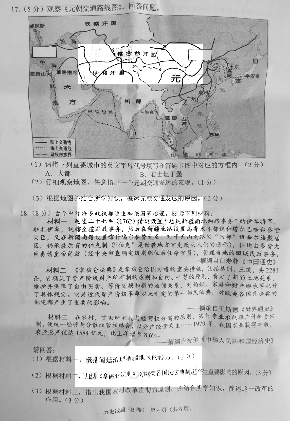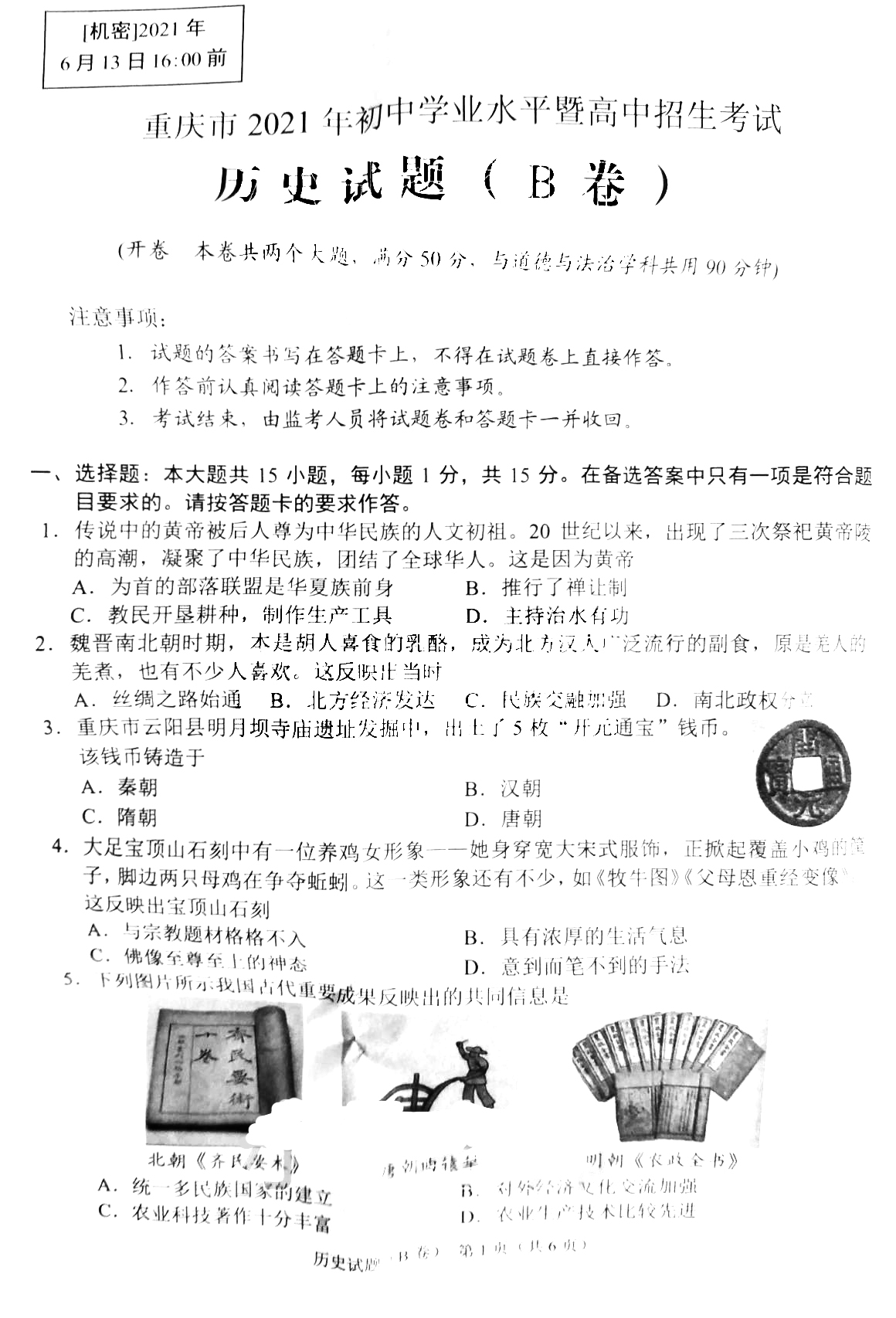 2021重庆中考历史b卷真题 2021重庆中考历史B卷真题及答案