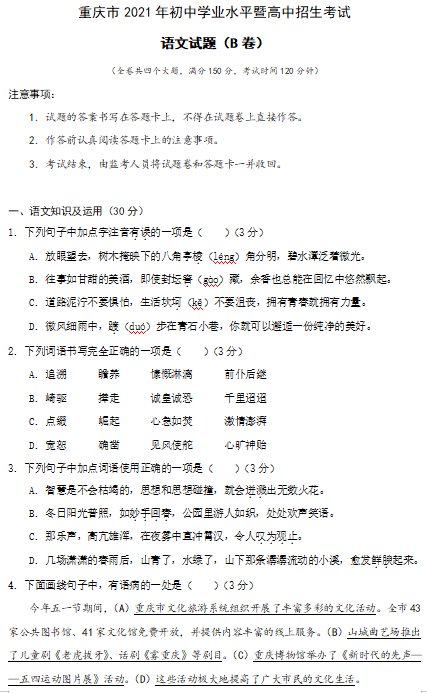 2021年重庆中考语文 2021年重庆中考语文试卷
