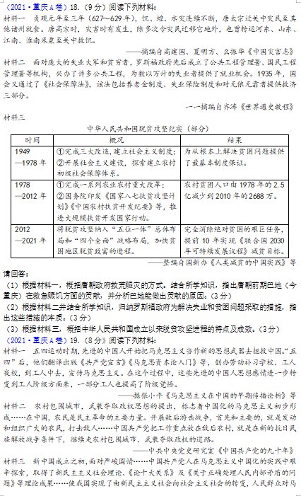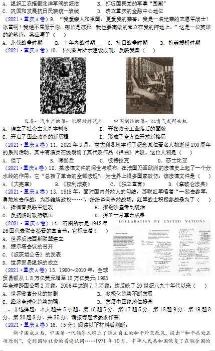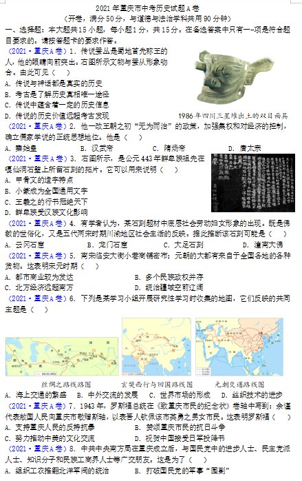 2021年重庆中考历史A卷试卷(图片版):