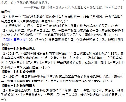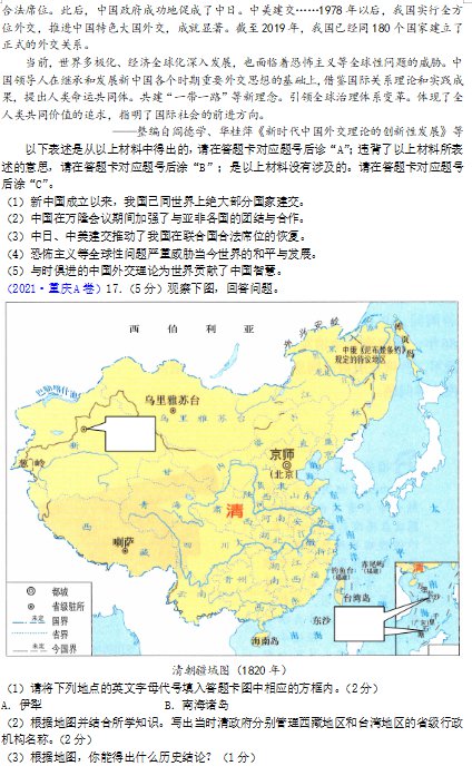 注重考查分析历史问题的关键能力,如探究题中分析新中国科技取得巨大成就的原因等。注重考查历史探究的关键能力和学生运用所学知识,用自己的语言进行历史解释的能力,如“根据地图你能得出什么结论?”等。