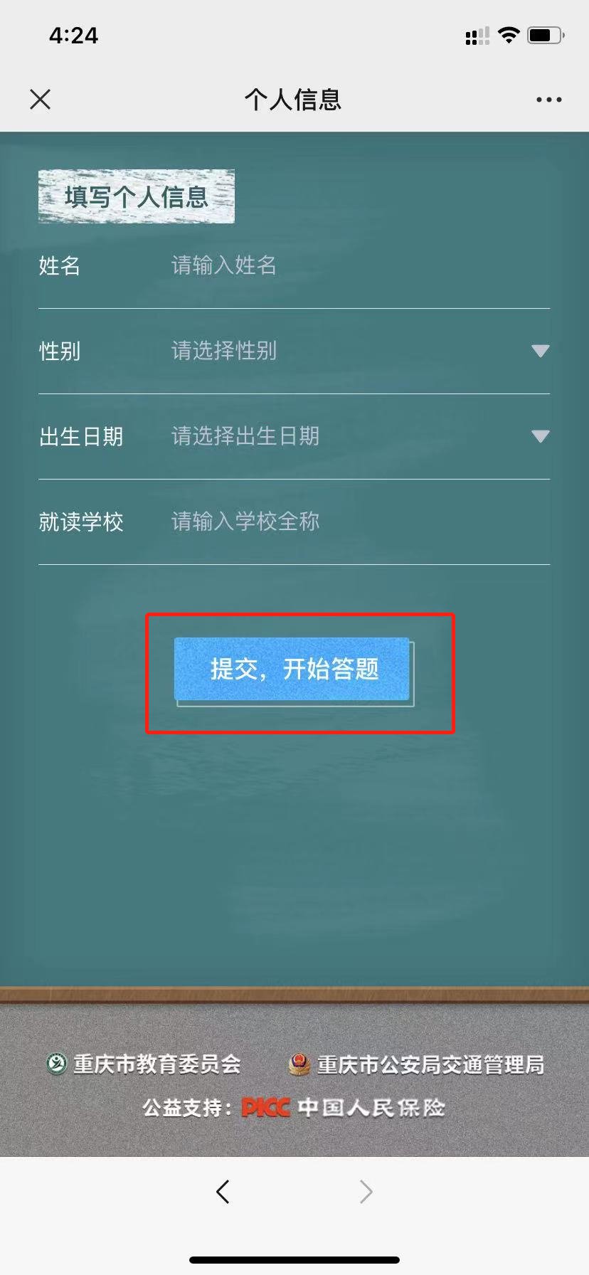 1、进入入口之后,点击“开始答题”,填写个人信息