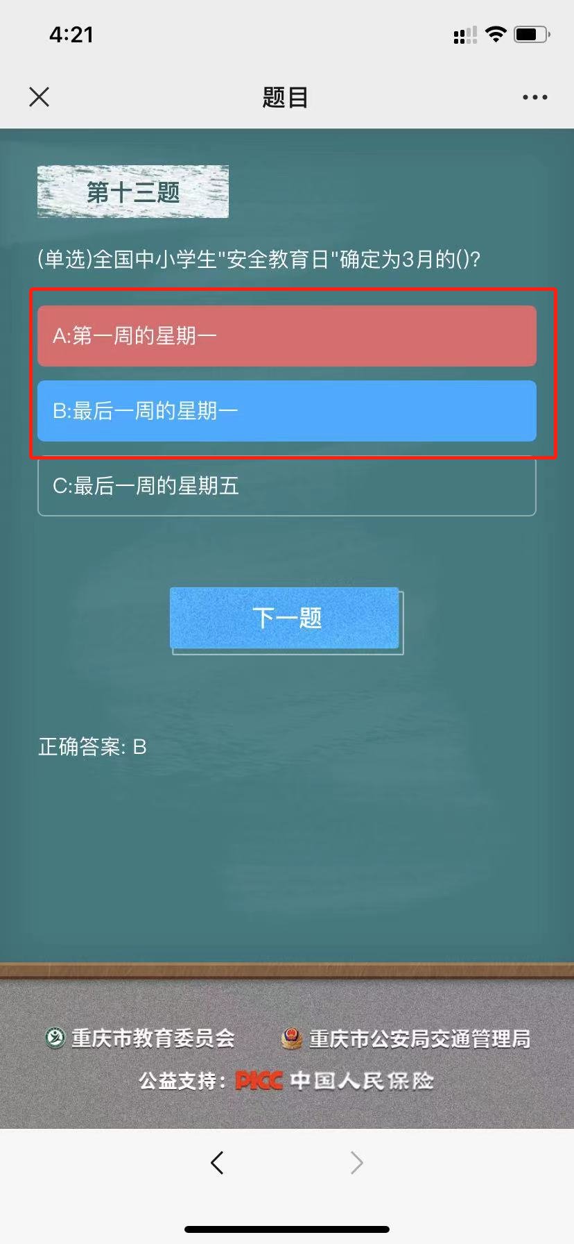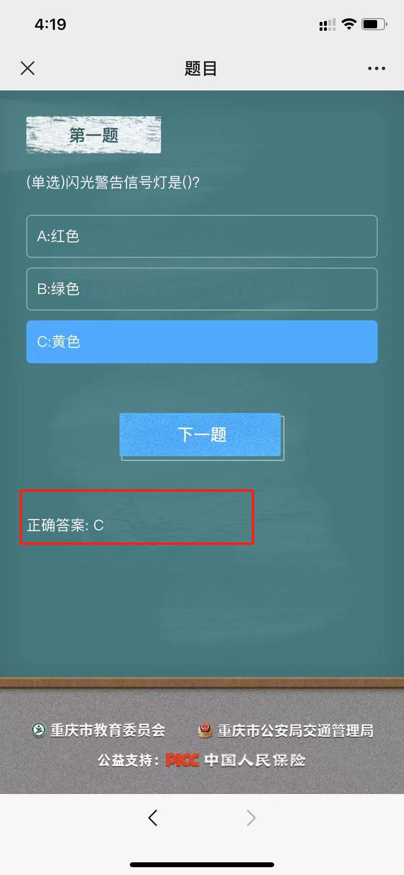 3、一共有20道题,答完之后可以进入“少年交警宣讲团”报名入口