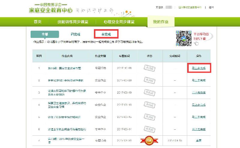 第二步:进入我的作业栏目,将“未完成”栏目中的作业点击“马上去完成”。