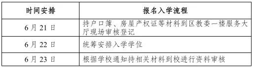 答:划片入读非学位紧张学校的沙坪坝区户籍适龄儿童按“三对口”原则(即适龄儿童与父亲或母亲的户口、房屋产权证、实际居住地一致)报名登记入学。各公办小学于5月27日起在校门公示栏处公布当年划片招生服务区域。适龄儿童法定监护人可关注招生信息,按相关要求完成儿童信息采集,经学校现场审核资料及实际调查,并完善网上基本信息填报后,于7月30日前到校领取《义务教育入学通知书》。