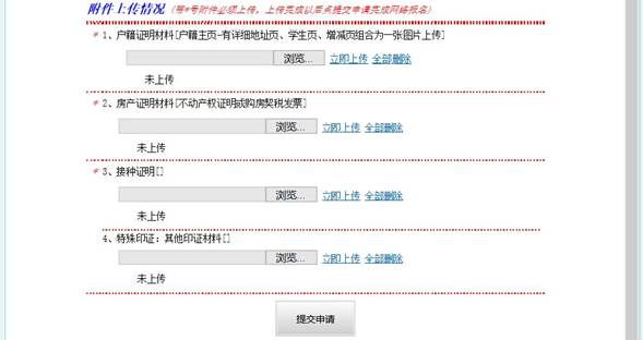 不同入学类型需上传不同的印证材料附件,根据系统弹出的附件内容依次上传。图片格式为jpg文件,大小不要超过1M,上传完成以后,图片会在下部以缩略图的形式显示。