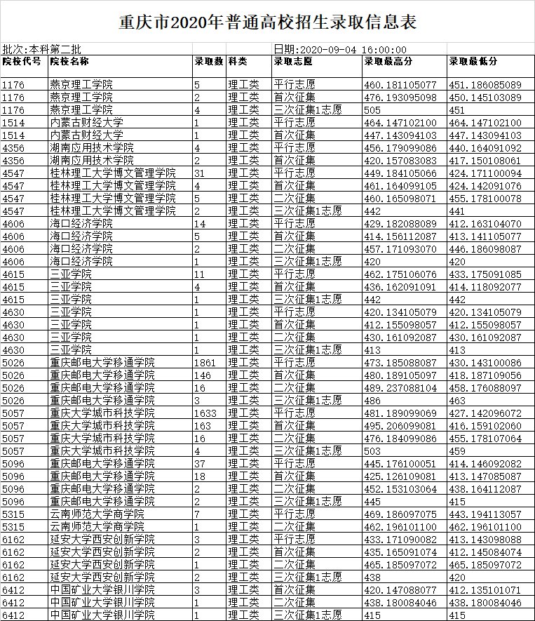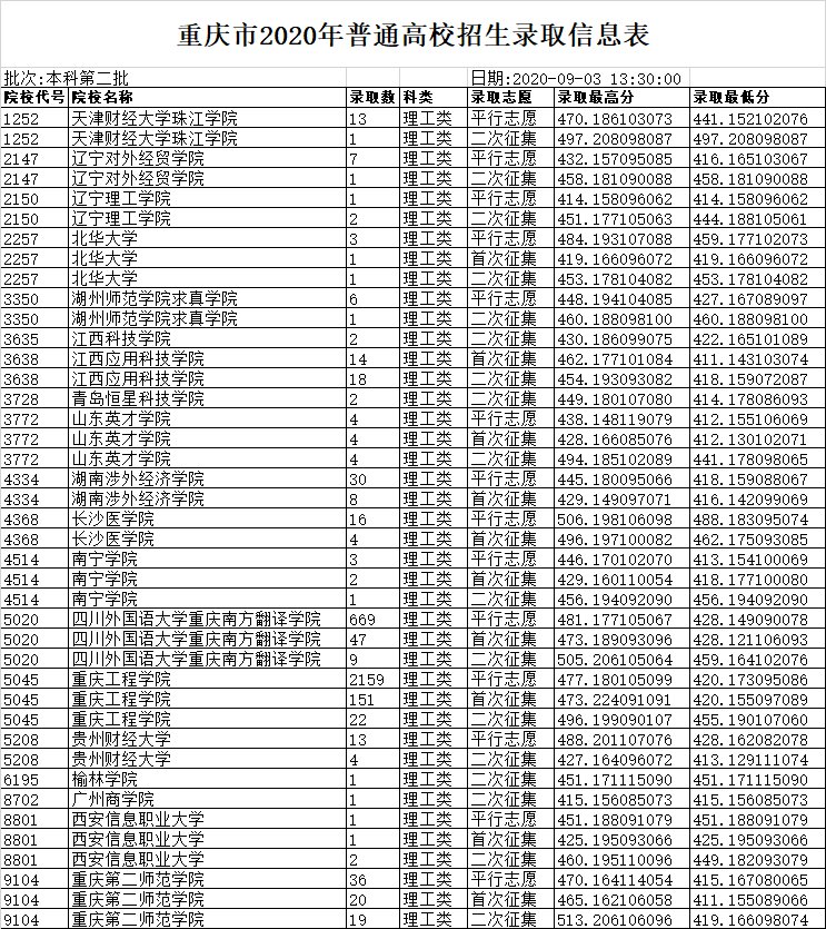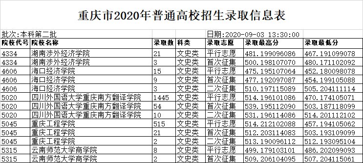 2021年重庆高考二本录取信息表暂未出炉,有消息小编会第一时间更新!