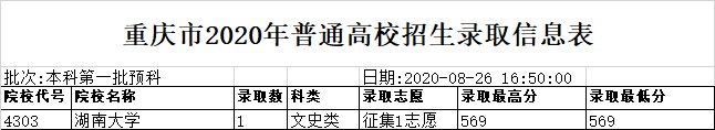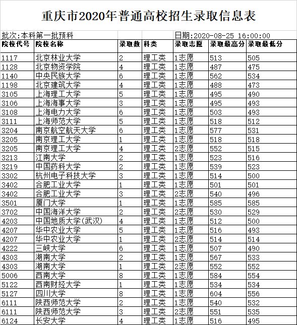 2020重庆高考录取信息表 2020重庆高考录取信息表图片