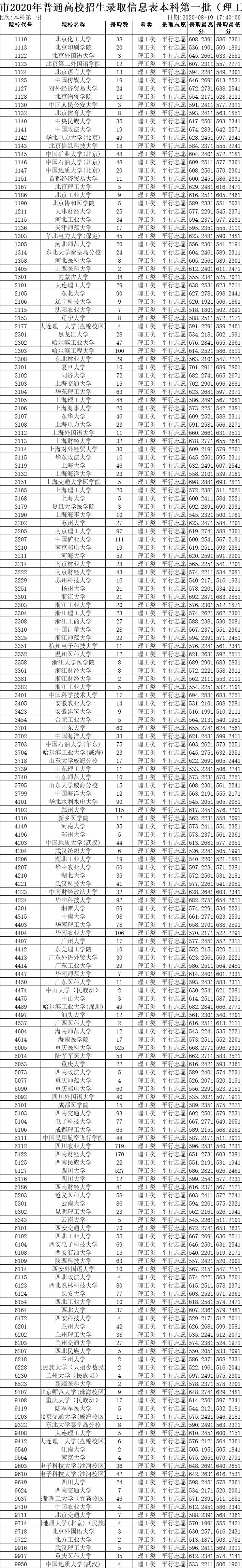 2020重庆各一本大学录取分数线(2020重庆所有大学录取分数线)